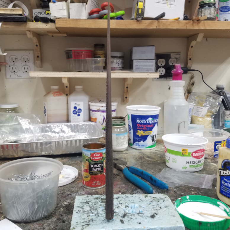Place the foam scrap on the table directly in front of you. All other materials will be placed around the central area.