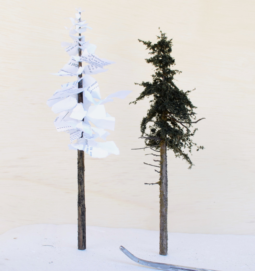 One thing to try before using the Green Branches material is to try it with some other material. All Coastman's employees start out making trees using white copy paper! This is somewhat painful given we have copious Green Branches, but I want them to learn the form of the tree. When the "green' is removed from the equation, all that's left is the shape. Perfect the shape first, then use the colored stuff. That's what I always say.