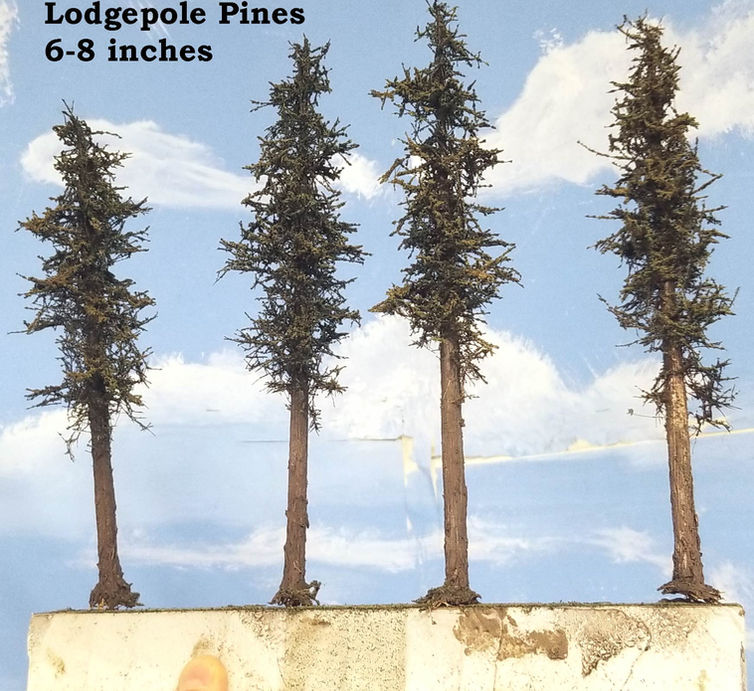 As a modeler, I have found the Ponderosa / Lodgepole style tree most elusive in terms of replication in model form. However, via my futile attempts, I created these unusual specimens. I feel the branches have a unique character, different from my usual "material over-the-top" method of construction. This is acquired via a "from the side" sequential application of fibers, which is new to me in concept. It seems to me this could represent firs that might thrive in a drier climate. I feel the overall presentation is closer to that of a pine tree. Scroll right or left using arrows to view additional photos (photo slider).