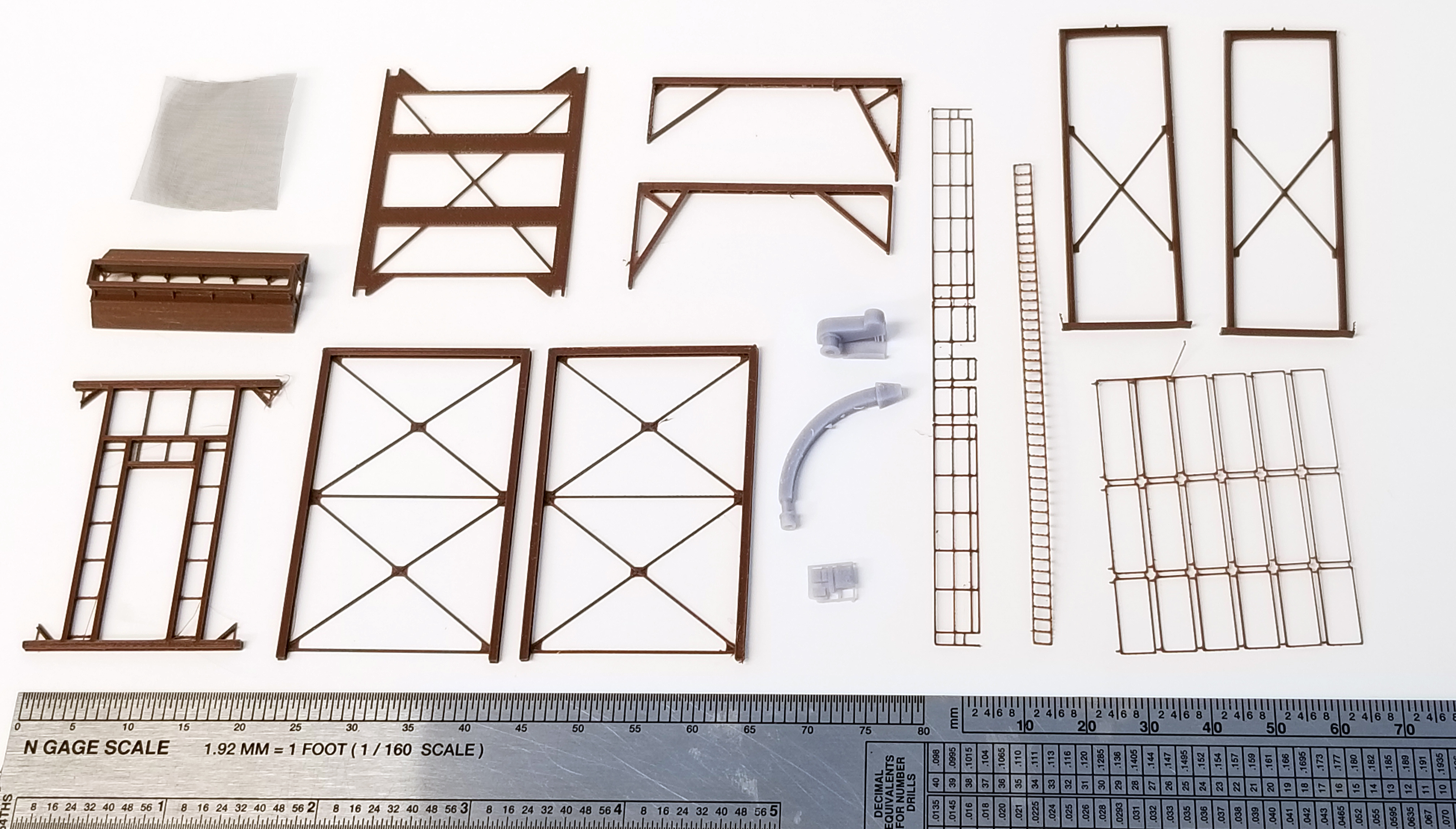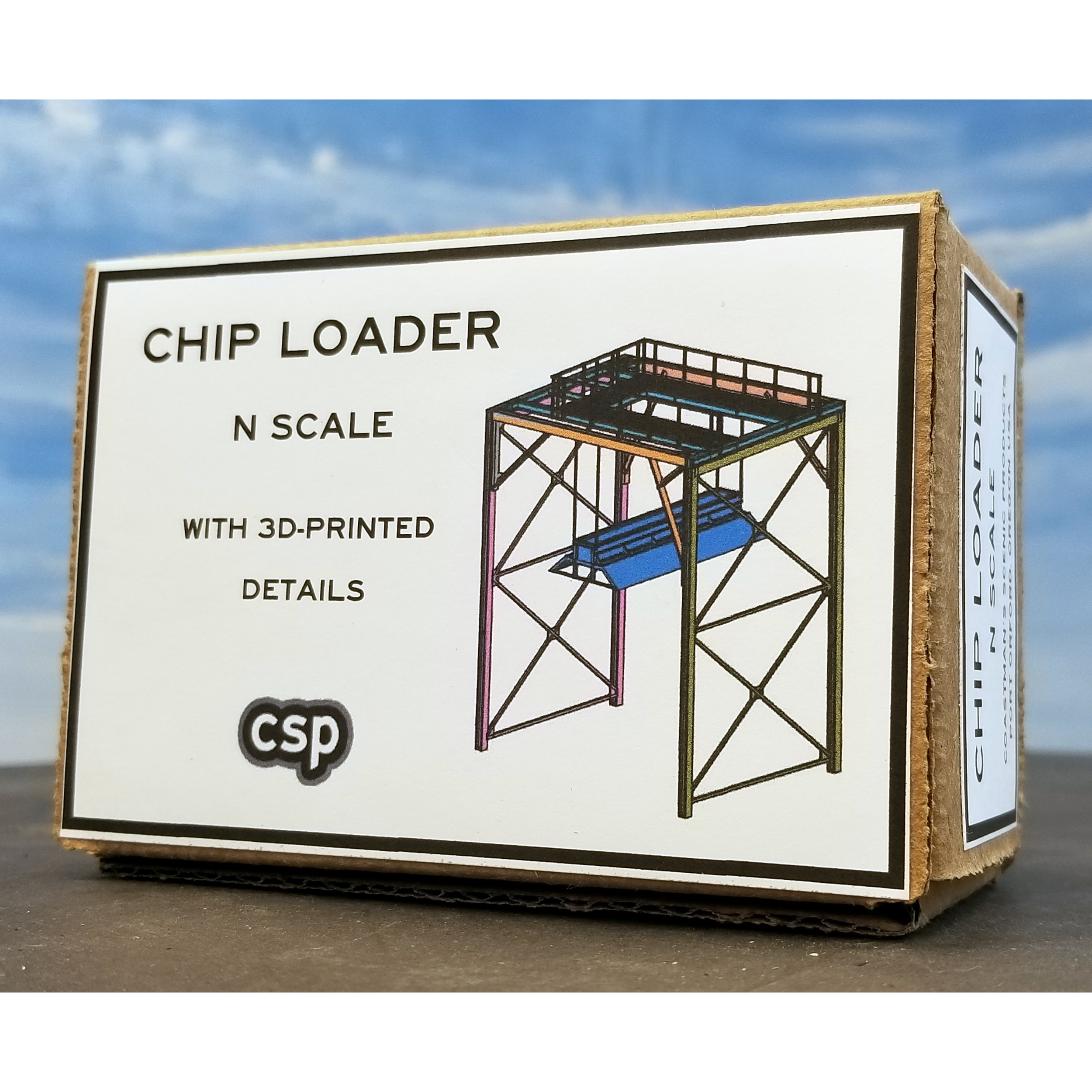 This N-Scale Wood Chip Loader Kit is truly one of a kind! This kit makes one Loader with a separate feeder tube, nozzle, and two upline support brackets. There's a "catwalk" to which you can add the included grid-mesh and safety rail. Also included are resin-printed details including an electrical panel and a gearmotor which is placed out front alongside the tracks. You supply a piece of 1/16" round tubing, e.g. styrene to "pump the chips" and scratch-build the panel shack. Great detail at a reasonable cost. Why burn 'em? Load 'em!