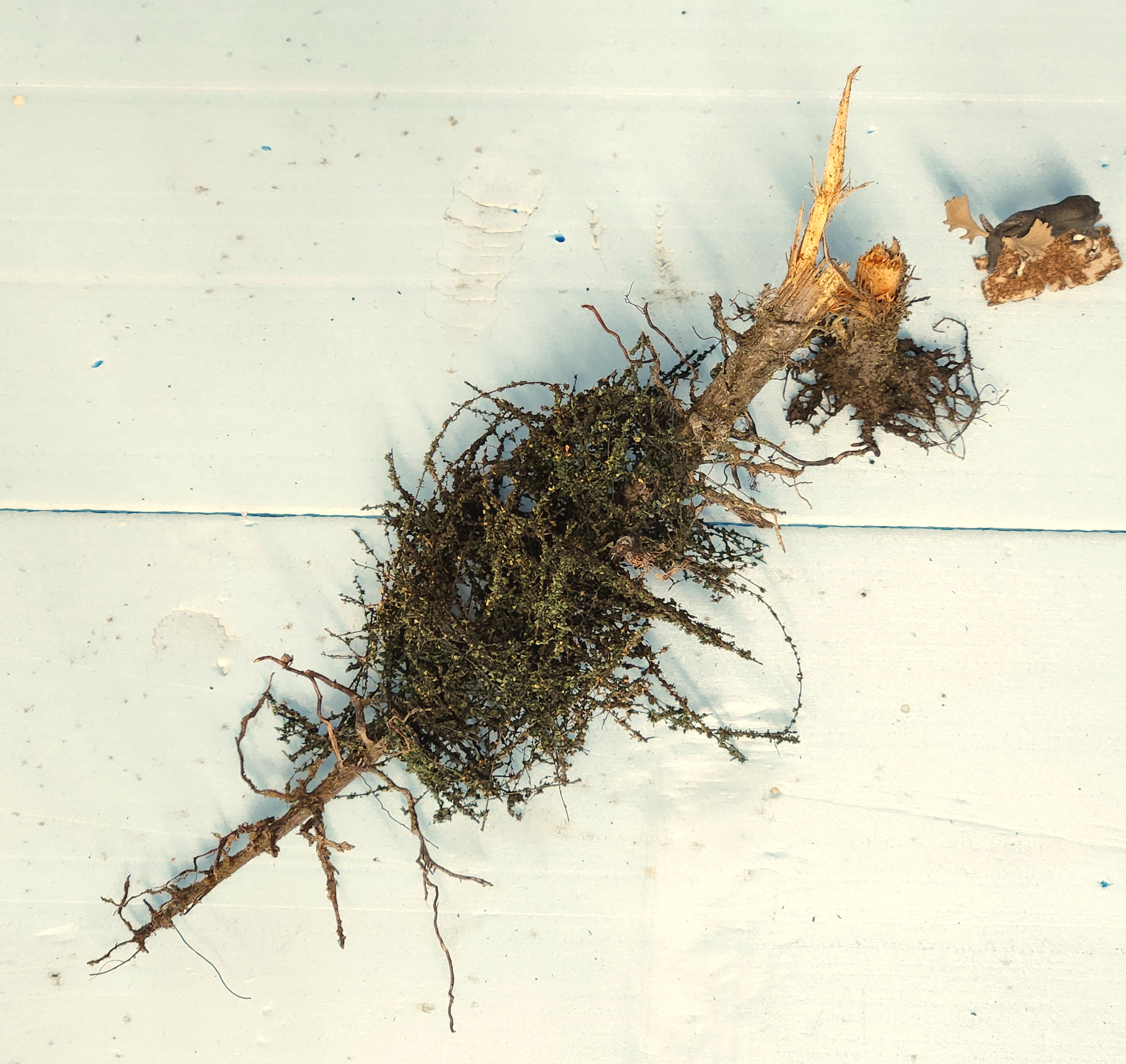 11" Downed Tree. If you can select it, it's in stock. If not, I can make one for you, by request (email is best). Choose between Chainsaw Cut, Axe-Cut, or the Windblown version. Includes all the fixins': dead branches, roots, moss, and lichen. They are 9 to 10 inches in total length. 13 inch tree shown.
