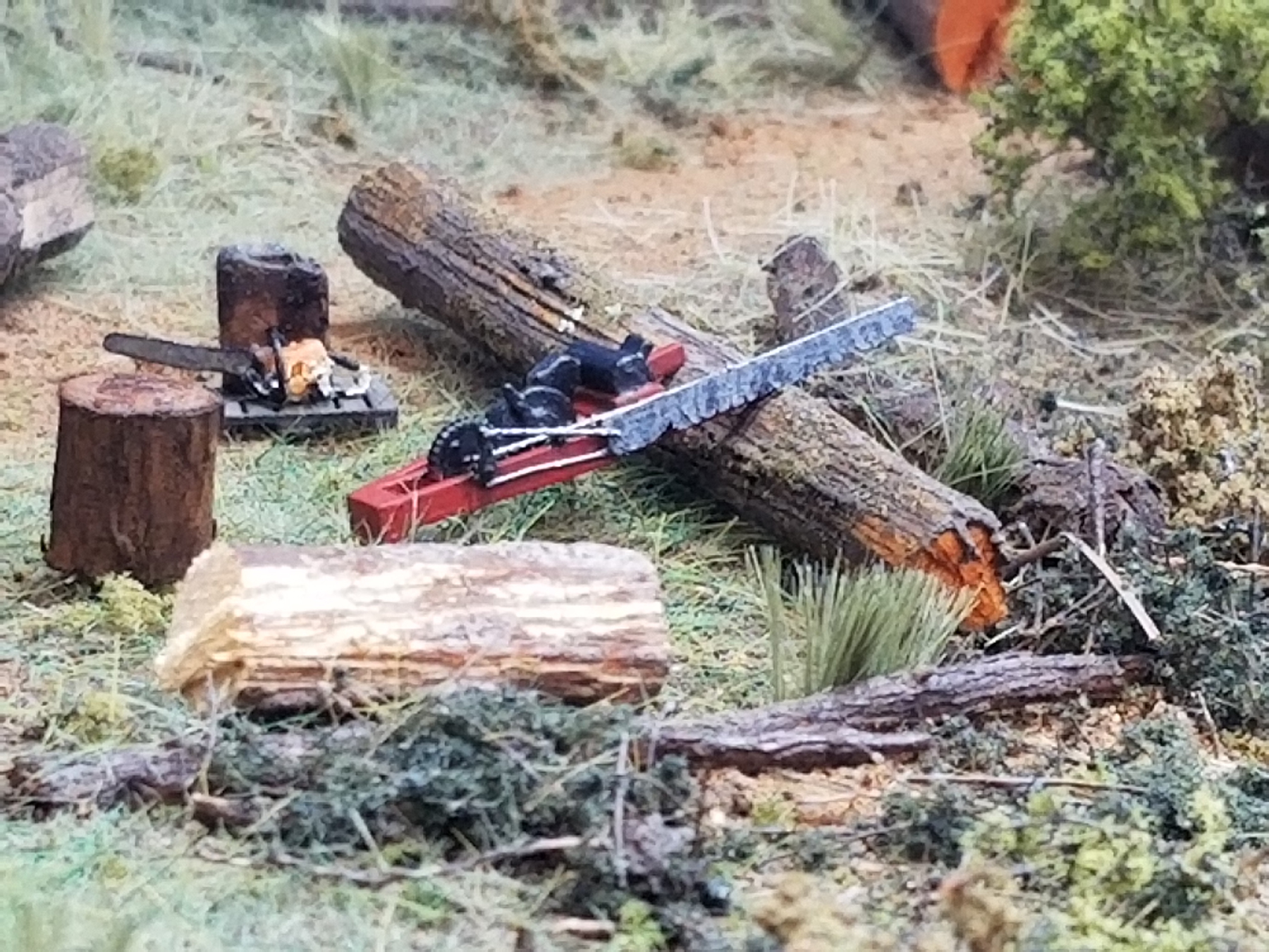 Assortment of four DRAGSAWS, each a different size. You paint. Lead-free castings with PLA blades (polylactic acid / PLA 3D-printer filament). Apply the blades with CA (super-glue) or canopy glue. There is a mounting plate on the blade that goes against the right side of the casting. Made in Oregon, USA.
