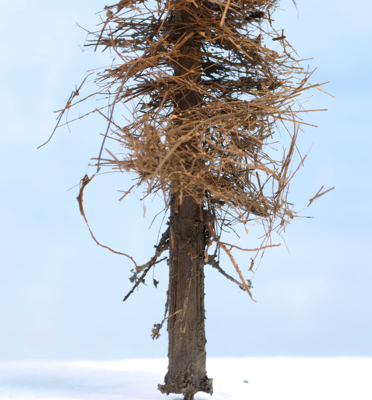 One fire-damaged and/or insect infested NINE inch tall tree! Includes a few dead branches and mild rooty detail. Every hillside needs at least one! Ships in 1 to 3 days.