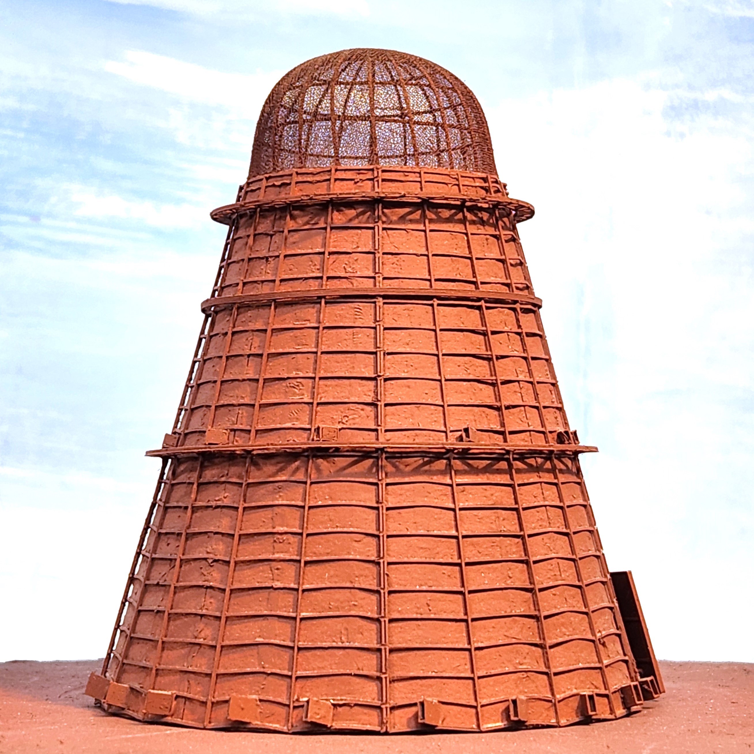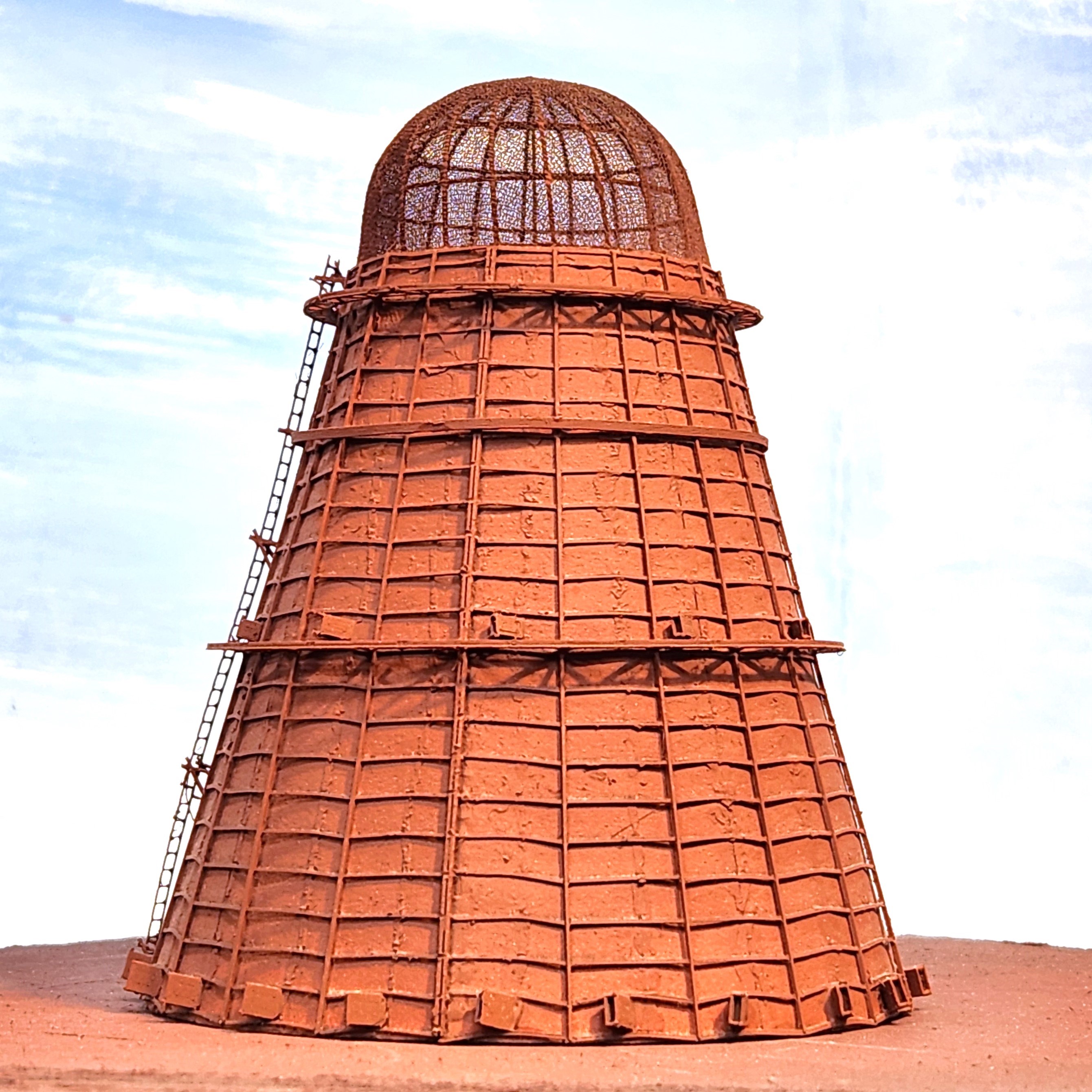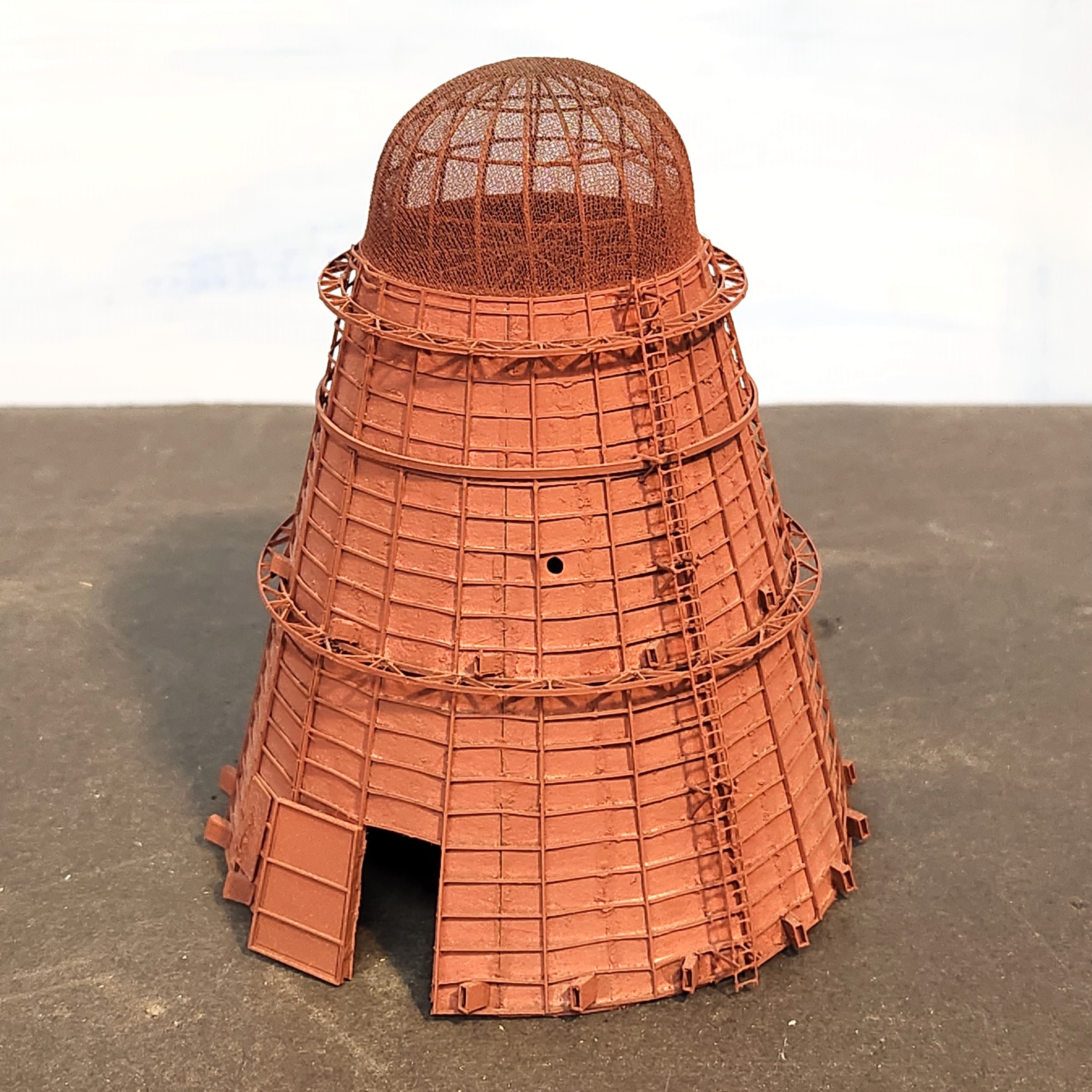 5.25" tall x 4.25" diameter. Though this one is 70% of the full-size model, all the original details are packed in, with essentially no compromises to the proportions of the parts! [Same amazing detail as the full-size HO model, yet a bit smaller at 70% of the size.] Perfect for a mill scene burner in the background. Or up front! This is the newest addition, and we have the "80%" version too, slightly larger, with few if any proportional compromises. What you see is what you get: You are ordering here the specific model shown. Foundations are not included, but the "plain" variety or the somewhat customized "concrete" perimeter foundation are available separately.